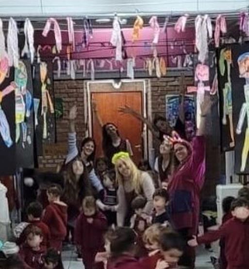 Cantaron una canción los profesores de Música Bruno y Jennifer junto a los estudiantes de la Banda Musical la canción Rosarito Vera. Compartimos desayunos en el turno de la mañana y meriendas en el turno de la tarde, acompañados de canciones interpretadas por la Vicedirectora de Inglés, Laura.