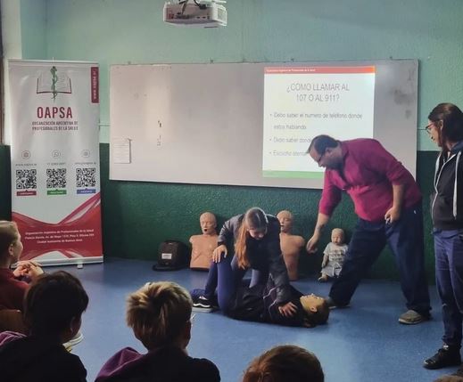 El pasado viernes 23 los y las estudiantes de 6° y 7° grados participaron del proyecto RCP dirigido por OAPSA (Organización Argentina de Profesionales de la Salud) aprendiendo reanimación cardiopulmonar básica en bebés y niños.