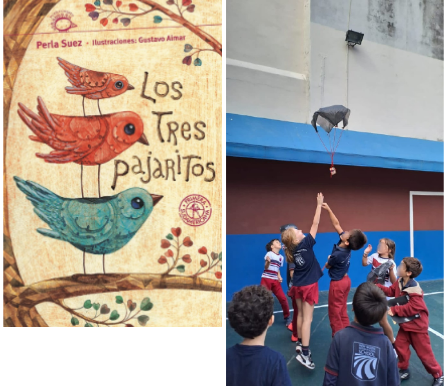 Esta vez leímos “Los tres pajaritos”, de Perla Suez, e hicimos volar nuestros pajaritos de papel.