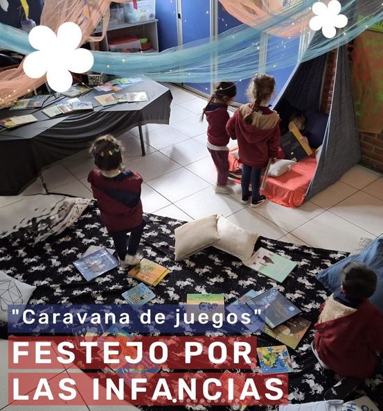 Los festejos por las infancias fueron vividos en las Caravanas de juego formadas por niños/as y docentes de distintas salas que pasearon por el Jardín encontrando espacios de arte, literatura, juegos matemáticos, emboque, lanzamiento, construcciones, baile y música para FESTEJAR EN GRANDE!!!