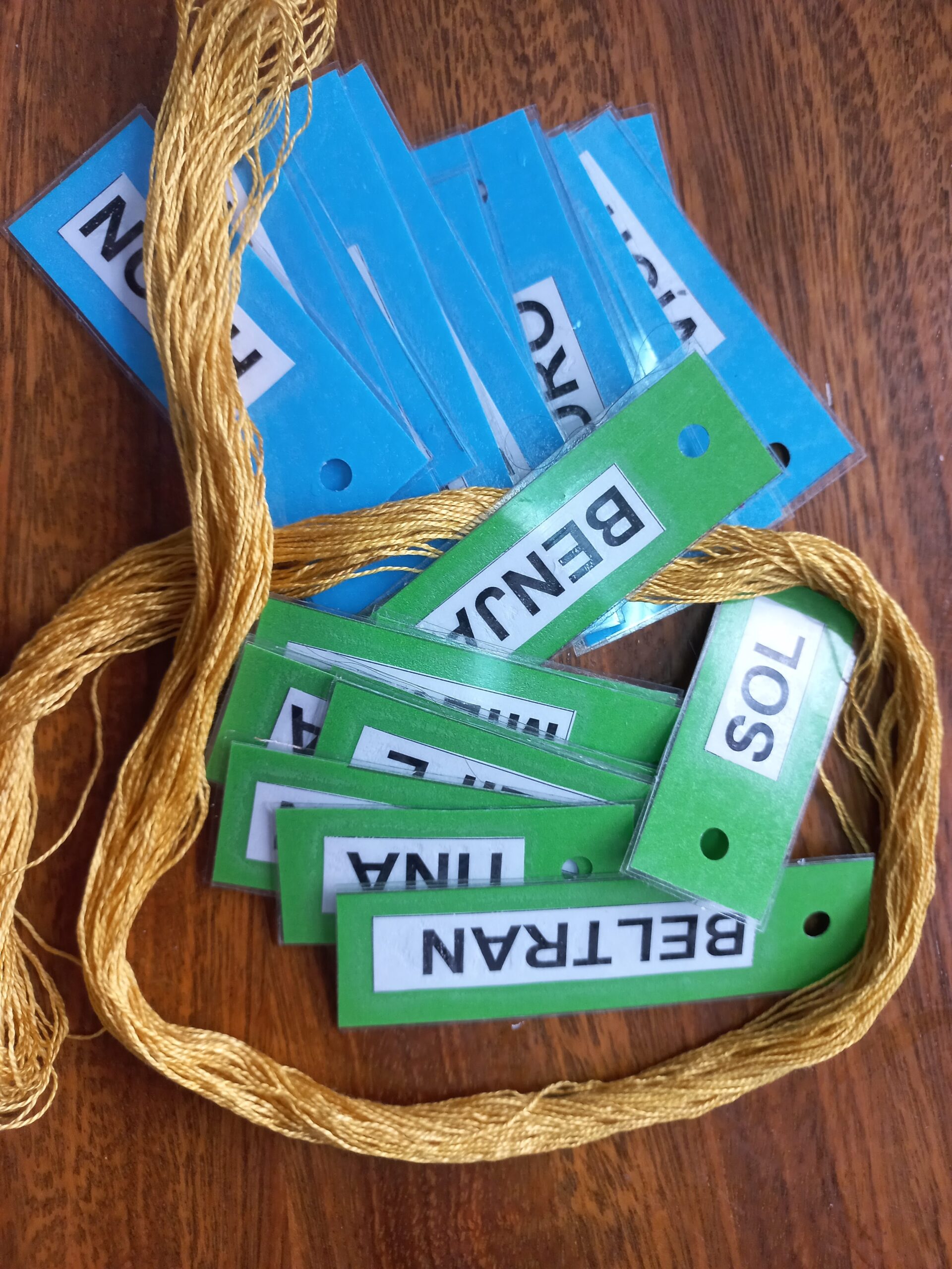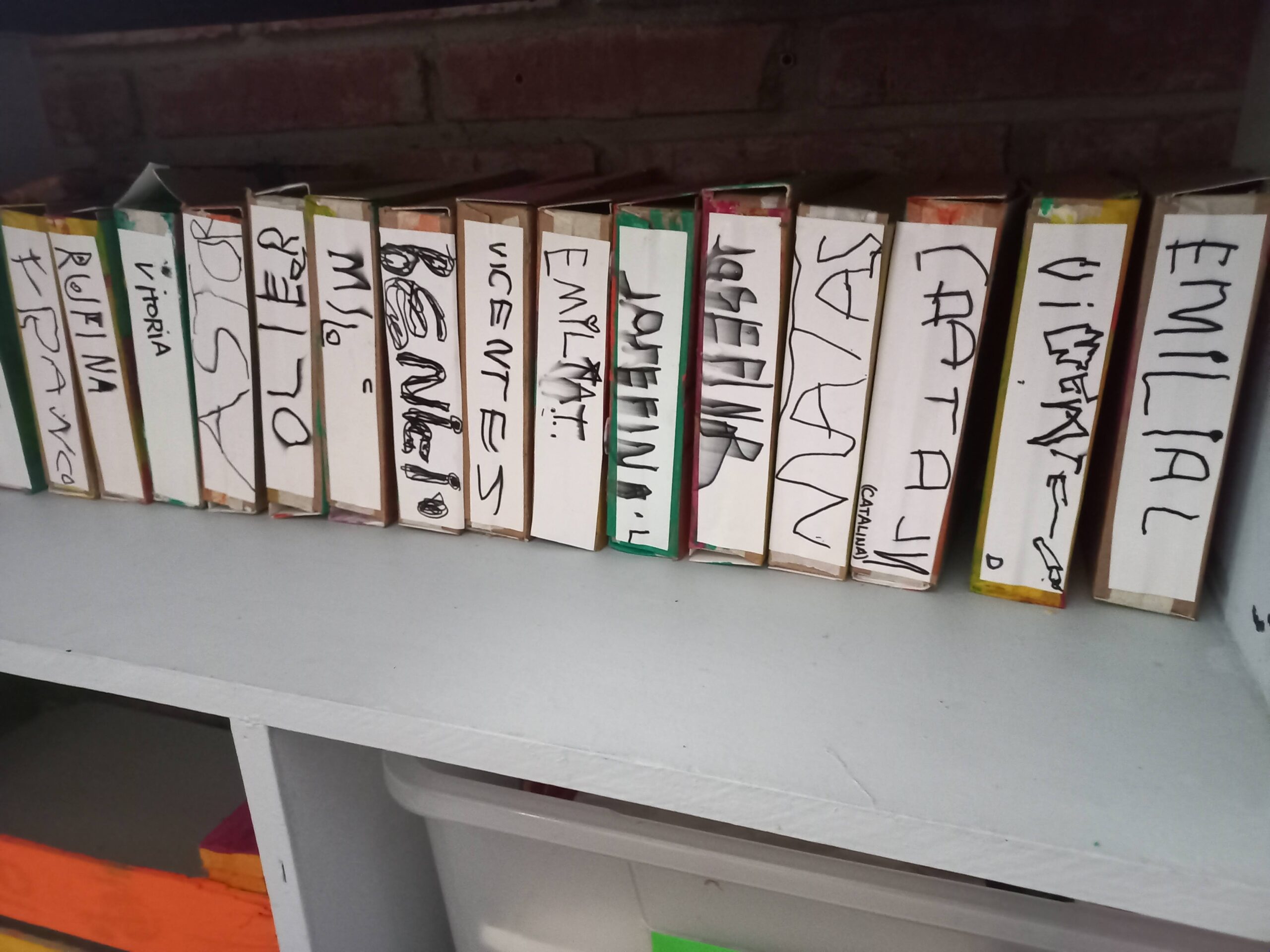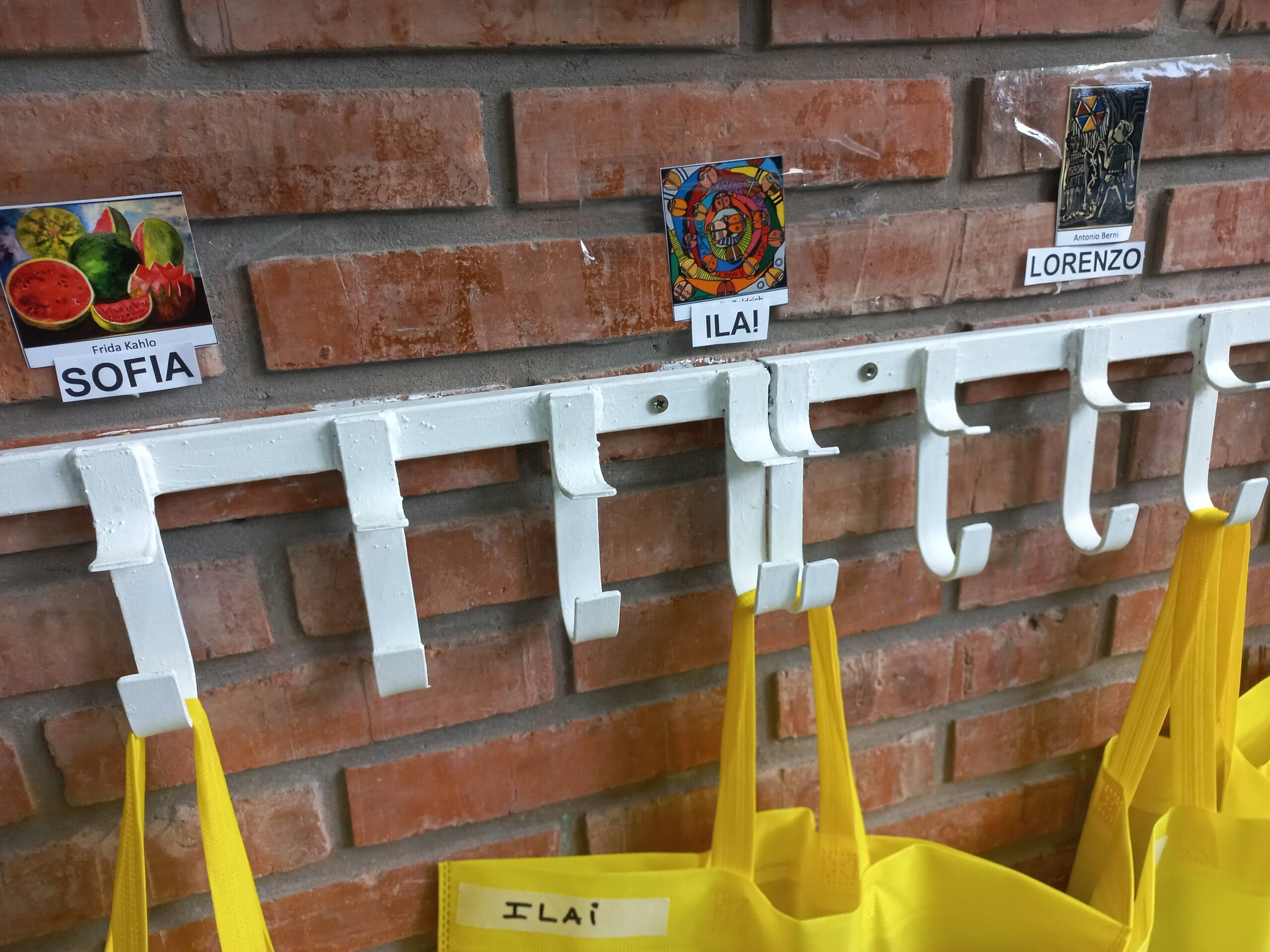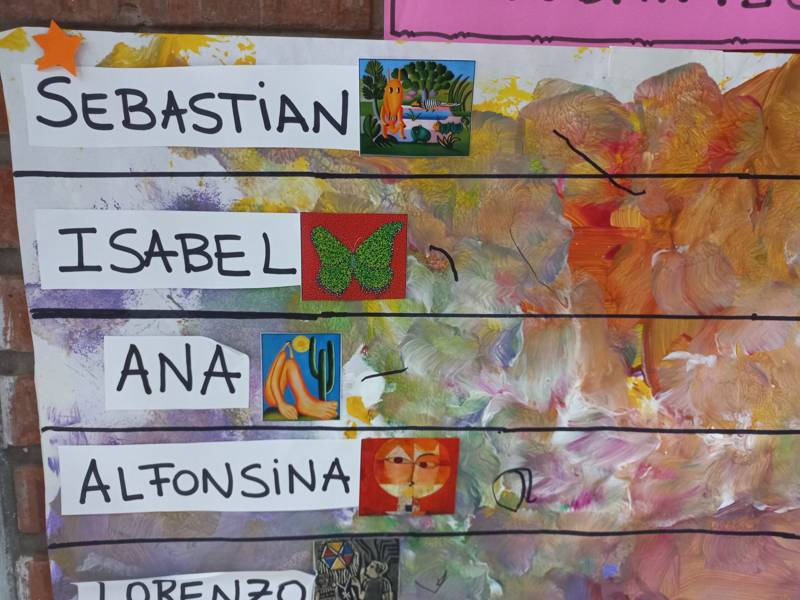 Para acompañar y estimular los procesos de alfabetización utilizamos letra de imprenta mayúscula en los nombres propios. Carteles para firmar los trabajos; listados de ayudantes del día; logos para el guardado de pertenencias; rótulos de producciones individuales. Así cada niño y niña se desenvuelve con creciente independencia en distintas actividades a lo largo de cada jornada.