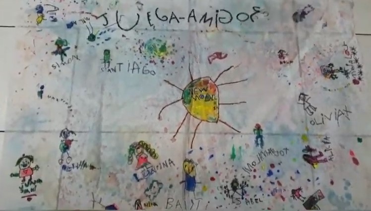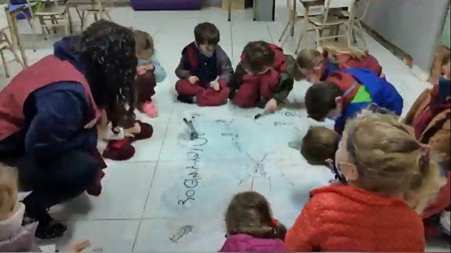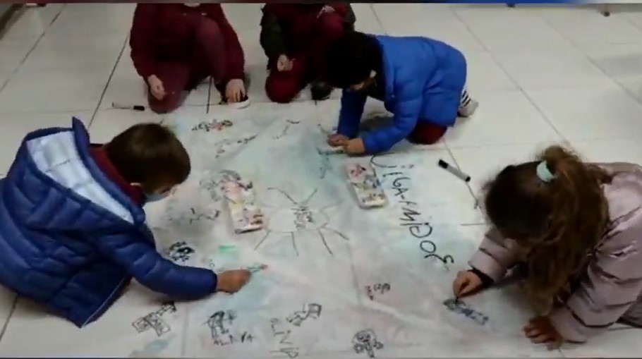 Las chicas y los chicos de sala de cinco años A y B eligieron por votación en el aula virtual el nombre de su sala y esta semana hicieron colectivamente las banderas.