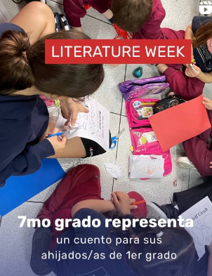 Durante la Semana de la Literatura, los alumnos y las de 7° grado A y B representaron The Wolf and the Seven Young Goats"  by the Brothers Grimm para sus ahijados y ahijadas de 1° grado.
