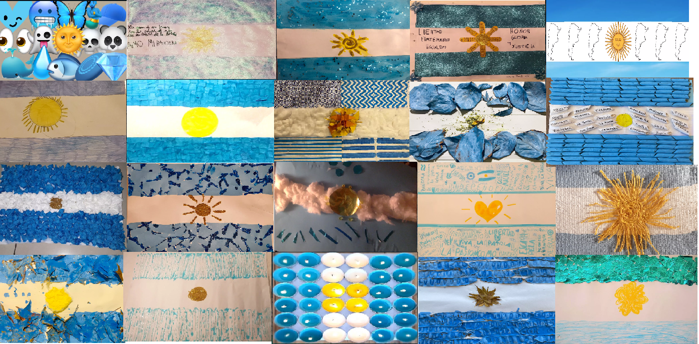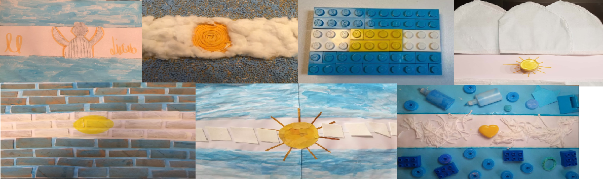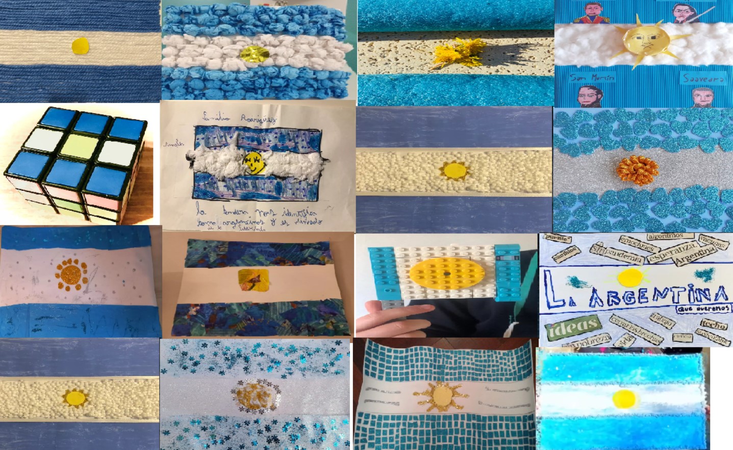 Hicieron nubes de palabras, bailaron una danza criolla y pintaron banderas en la clase de plástica y en familia.