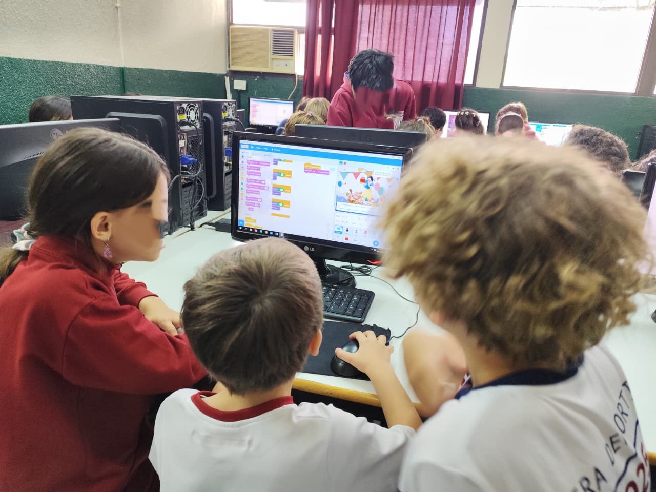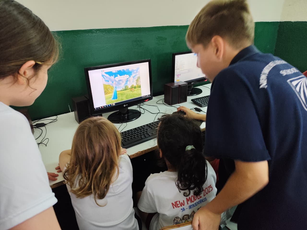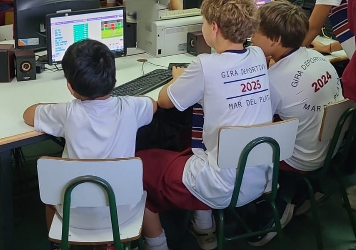 El proyecto lo llamamos Madrinas y Padrinos y hacemos muchas actividades para acercar a los más chiquitos con los más grandes del colegio. En esta oportunidad, los 6° grados les mostraron, enseñaron y jugaron con Jardín los juegos digitales y educativos que diseñaron y programaron para la Certificación en Programación del Programa Digital Junior de la UTN.