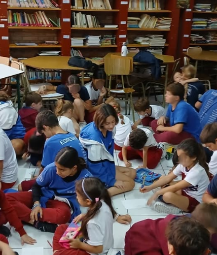 Y 6° grado con Salas de 5 años se encontraron jugando, conversaron sobre sus familias, sus rutinas y gustos, dibujaron y escribieron en el cuadernillo de sala de 5 y desplegaron juegos en el patio del colegio.
