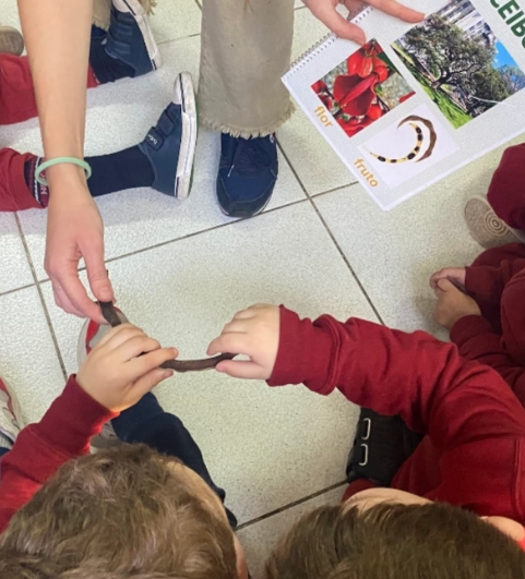 Al mismo tiempo, continuaron trabajando en el Proyecto Ambiental. Observaron diferentes tipos de semillas, conocieron la leyenda del Timbó y aprendieron a separar los residuos correctamente, identificando los cestos correspondientes según su color.