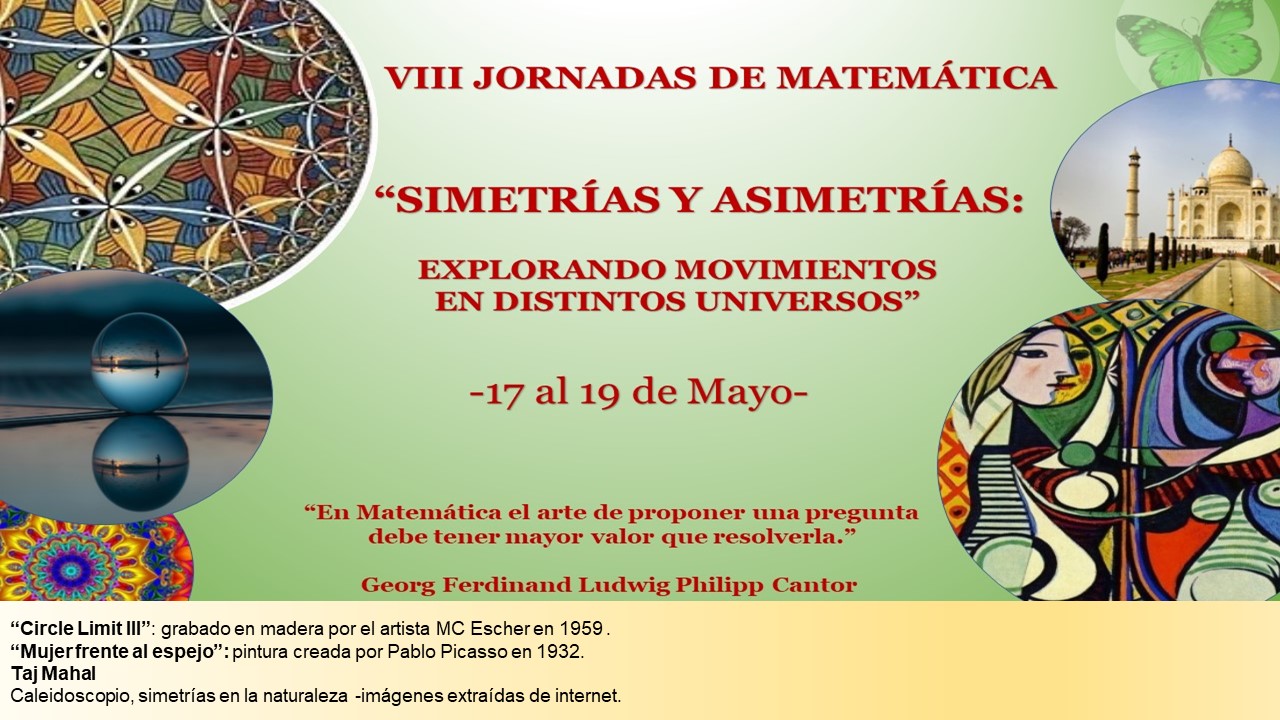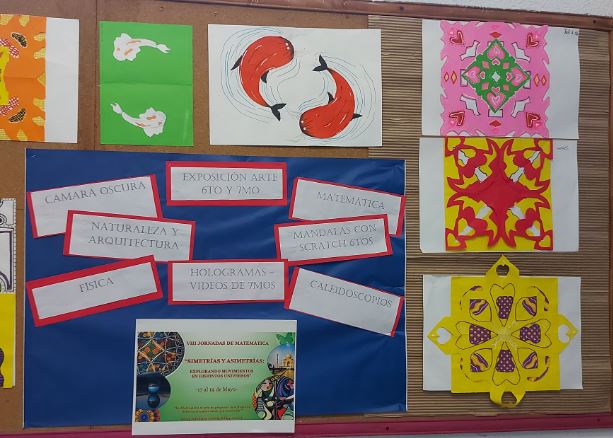 Hemos celebrado las 8vas Jornadas de Matemática: Simetrías y Asimetrías: explorando movimientos en distintos universos en nuestra escuela, una propuesta interdisciplinaria entre las áreas de Educación Digital, Plástica, Ciencias Naturales (Biología y Física) y Matemática.
