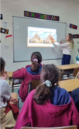 - Exposición de Simetrías y Asimetrías en la Arquitectura: se proyectaron diapositivas expositivas a cargo de la profesora de Matemática Loana Serres.