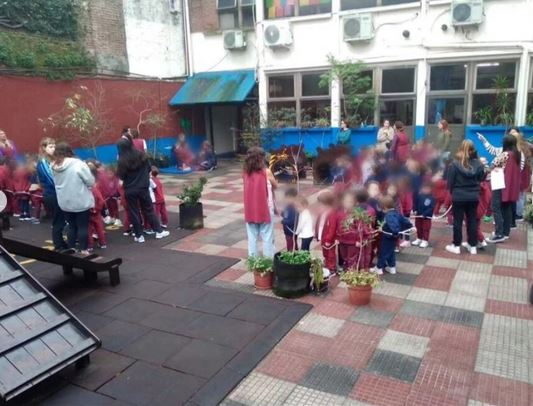 Todos/as los/as alumnos/as del Nivel Inicial y Primario, junto a sus docentes y personal de la escuela se dirigieron a diferentes sectores de la escuela, como por ejemplo el patio, y en algunas ocasiones a la calle, con el fin de concientizar en la importancia de la prevención.